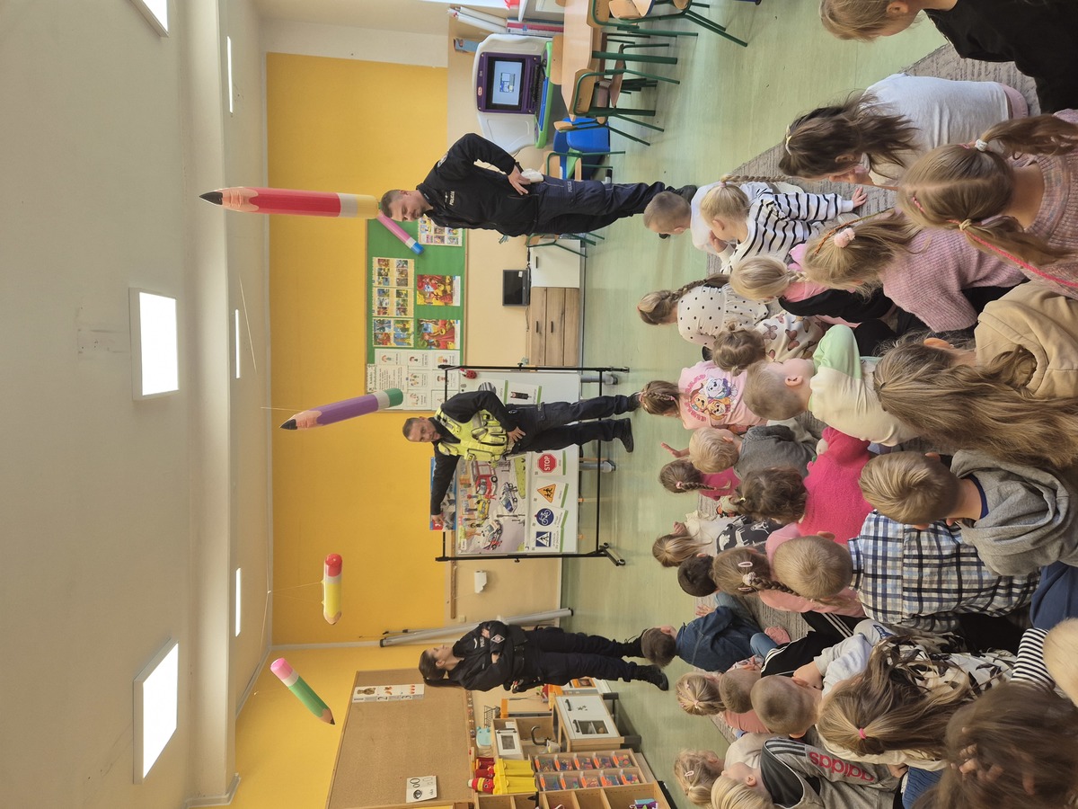 Podczas pogadanki funkcjonariusze przypomnieli dzieciom podstawowe zasady bezpiecznego poruszania się po drogach, w tym jak prawidłowo przechodzić przez jezdnię, korzystać z przejść dla pieszych oraz zachowywać ostrożność podczas jazdy na rowerze. Policjanci zwracali również uwagę na inne aspekty bezpieczeństwa, np. kontakt z nieznajomymi czy zachowanie ostrożności w różnych sytuacjach dnia codziennego. Spotkanie miało charakter interaktywny – dzieci zadawały pytania, dzieliły się swoimi doświadczeniami.