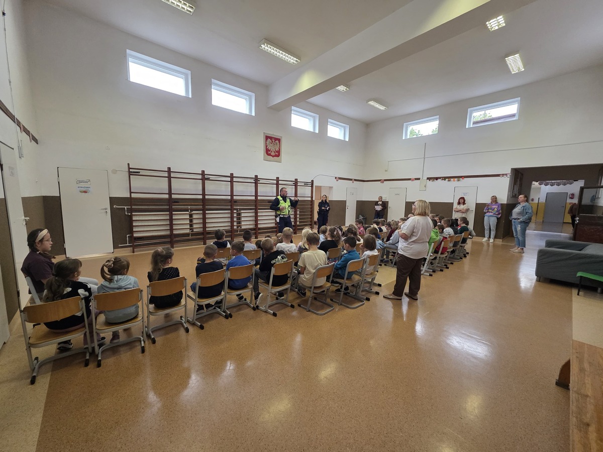 Policjanci z Komendy Powiatowej Policji w Nowym Dworze Gdańskim odwiedzili uczniów Szkoły Podstawowej w Nowej Cerkwi oraz przedszkolaków w Ostaszewie, aby przypomnieć najmłodszym zasady bezpiecznego poruszania się po drogach i w codziennym życiu. Podczas spotkania dzieci mogły zadawać pytania i dowiedzieć się, jak dbać o swoje bezpieczeństwo na co dzień.