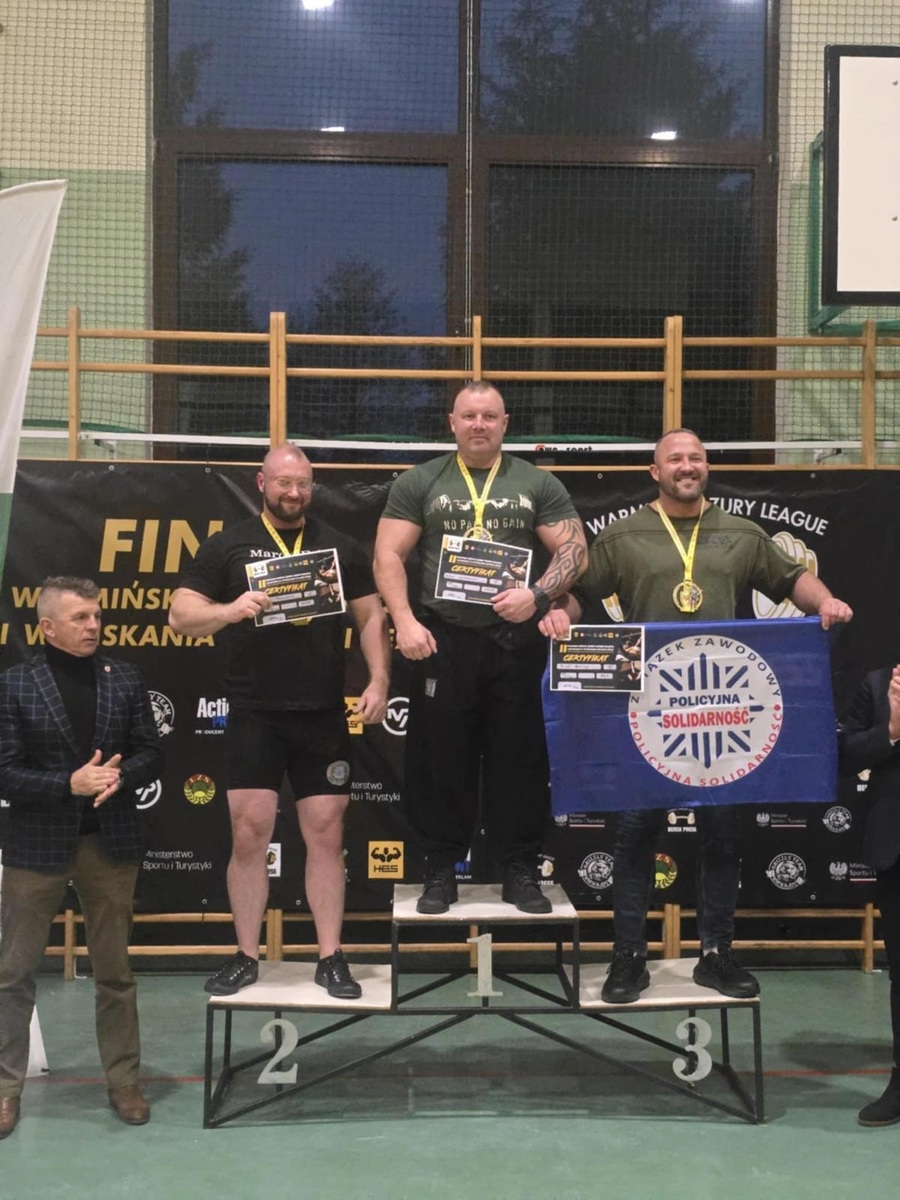 Kolejne wyróżnienia trafiły do mł. asp. Pawła Bellinga. Funkcjonariusz zajął trzecie miejsce w kategorii służb mundurowych do 125 kilogramów, a także trzecie miejsce w klasyfikacji generalnej służb mundurowych finału ligi. Jego wynik to 155 kilogramów, potwierdził wysoką formę sportową i konsekwentne przygotowanie do zawodów.